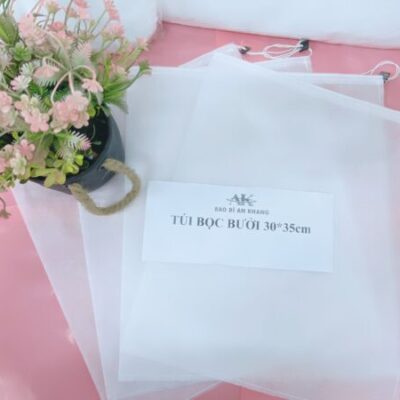 – Dùng túi luồng từ dưới lên bao trọn quả và rút dây rút trên bao để siết miệng túi vừa với cuống quả.