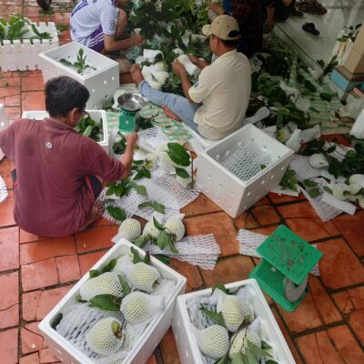 - Xốp bao na còn bao bọc ngay khi trên cây tránh côn trùng gây hại như ruồi vàng gây hiện tượng có ròi trên qủa